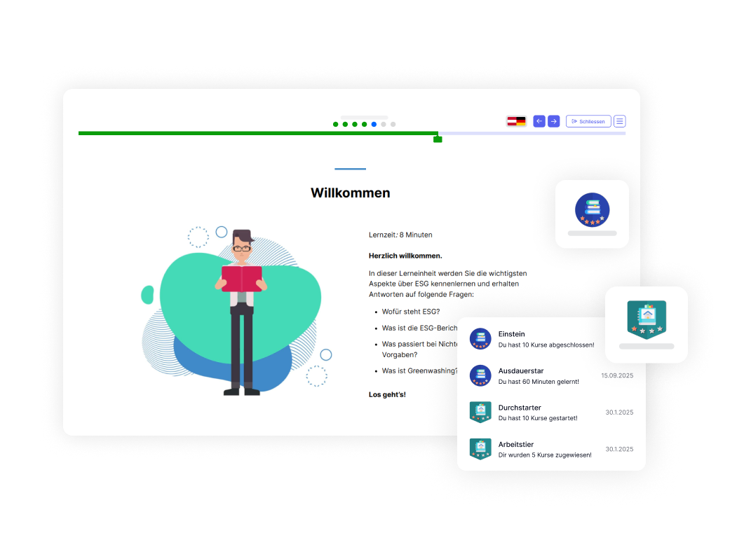 Greifen Sie direkt auf über 200 fertige E-Learning-Kurse zu – von IT-Anwenderwissen über IT-Sicherheit und Compliance bis hin zu Umwelt & Nachhaltigkeit – ideal als Einstieg in digitale Weiterbildung oder zur Ergänzung Ihrer bestehenden Trainings.